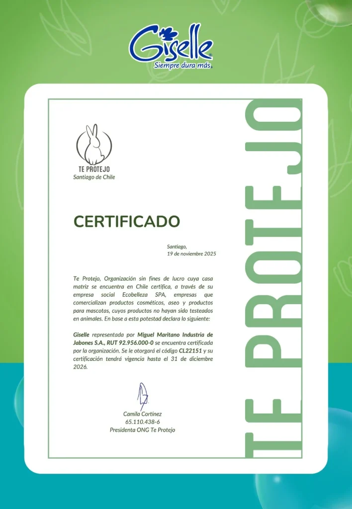 Hoy, las barras de jabón Giselle poseen atributos muy destacables: Están elaboradas a partir de ingredientes de origen vegetal de fuentes renovables, son biodegradables, libres de testeo animal, producidas con energía eléctrica renovable y sus envases son reciclables.